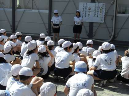 左:開会式。5年生のお別れスポーツ委員が司会進行しました。
