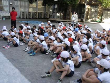 右:閉会式。2月というのに20度以上の暑い日でした。みんな、汗だくです。