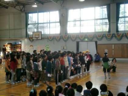 各学年から6年生へ出し物をしたり、一緒にゲームを
