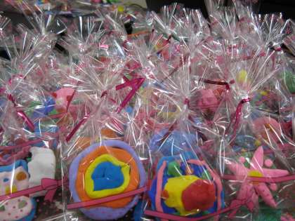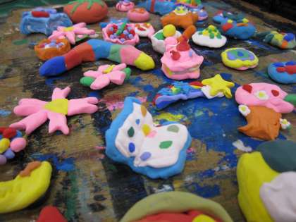 じしゃくに紙粘土で飾りをつけて、6年生にプレゼントしました。