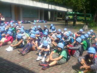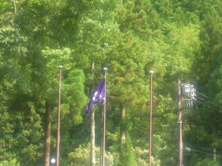 校旗を掲げ、予定より15分も早く宿舎での生活がスタートします。