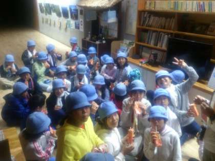 ナイトハイクプログラムが終わり、夜食のオレンジジュースをいただきました。
