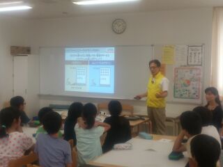社会貢献事業として家電メーカーから来てくださった講師が楽しくユニバーサルデザインの考え方を子どもたちに伝えてくれます。