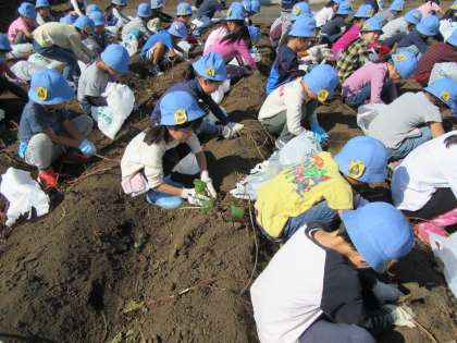 しばらくすると、さつまいもが見えてきて、子どもたちは大喜びです。
