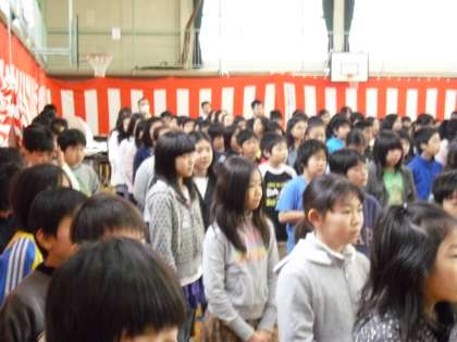 右:児童代表の言葉は、3年生と5年生が担当でした。5年生の代表児童が、1年間の思い出 や6年生になってからの抱負を話しました。