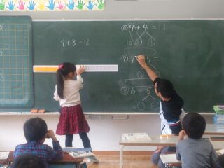 1年生が、繰り上がりのあるたし算の学習に取り組んでいます。
