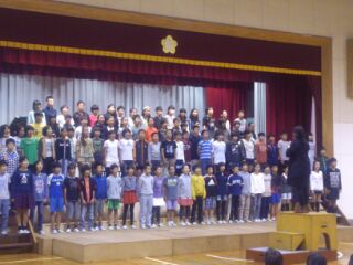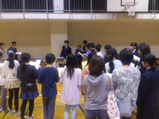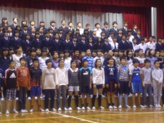 桜木中の体育館で2校の6年生と桜木中の1年生が集い、各校の合唱を披露し、最後に3校の子どもたちが桜木中合唱コンクール1年生の課題曲を歌い上げまさした。