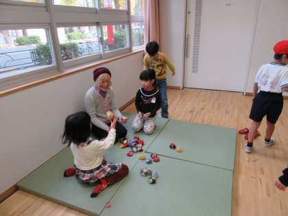 コマ・お手玉・けん玉・あやとり・おはじき・だるま落としなど日本の伝統的な遊びを地域の人たちが優しく子どもたちに教えてくれるからです。