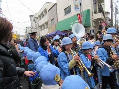 大勢の人たちに戸惑いながらも、お家の人たちのご協力のおかげで6年生が演奏するパレードの会場にたどり着きました。
