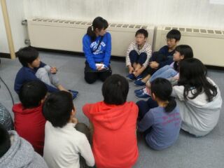 スキー班毎に一人一人が今日のがんばりを確認し、明日のめあてを言っていきます。