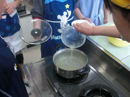1組は昨日、2組は本日、家庭科でレモネード作りをしました。