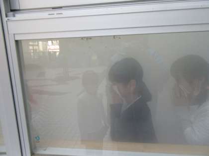 たくさんの方々にご協力いただき、校庭や校舎内の廊下で煙りの中を移動する体験をすることができました。