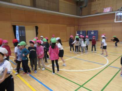 勉強している様子を見てもらったり、最後に体育館でじゃんけん列車をしたりして交流しました。