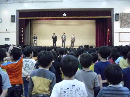 今日の5時間目に警察の方にきていただき、学校全体で連れ去り防止のセーフティー教室を開いていただきました。