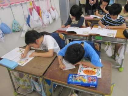 1組は「わけっこしよう」で友達の大切さを、2組は「おばけがっこうのきまり」できまりを守ることの大切さを学びました。
