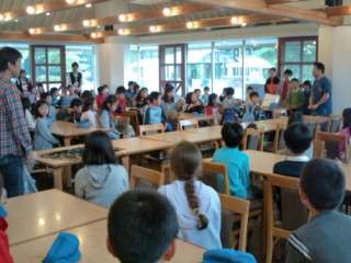 桜小と中里小で合同の開室式を行いました。いよいよ川場での生活が始まりました。