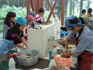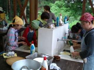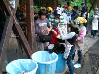 食事のあとはみんなで協力してお片づけをします。水は冷たいし、なかなか落ちないし。でも、これが貴重な体験なのです。