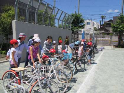 警察の方、お家の方々にご協力いただき、自転車の乗り方やきまりを学びました。