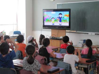 また、教室ではクイズをしてもらったり、交通安全についてのDVDを観て学習することができました。