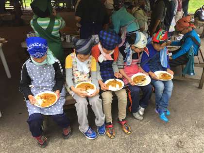カレー作りは、ご飯の焦げ具合は様々でしたが、概ねどの班も美味しく出来上がったようです。