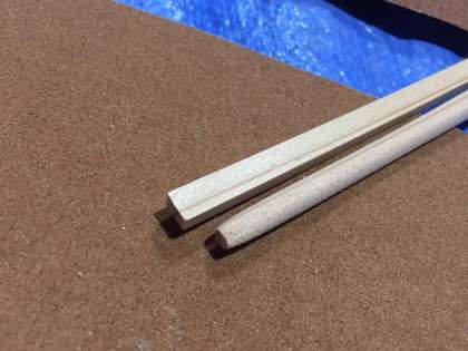このような学習をしたあと、外観は割り箸のような材をヤスリで削っていきます。2枚目の写真の箸は、削る前と削ったあとの写真です。