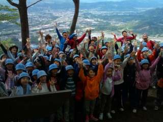 難所を乗り越え、みんな頂上に到着。最高の景色です。よくがんばりました。