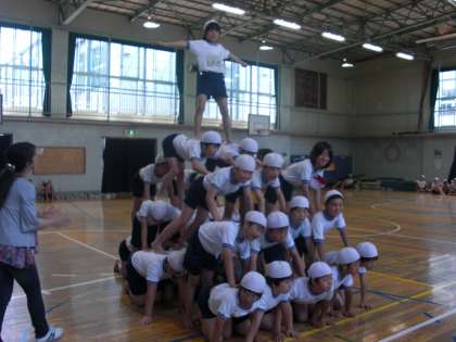 最後には男女分かれて二つの大きなピラミットをつくります。