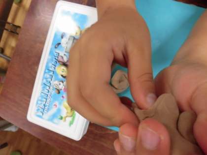 ころころ転がして細長い形を作り、くるくる巻いていきます。