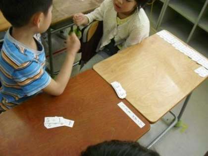 今、1年生の算数の授業では、「たしざんカード」を使っています。