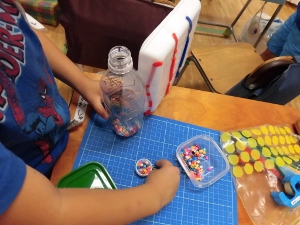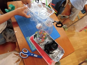 土曜日、生活科の時間に「みずにうくおもちゃ」をつくりました。