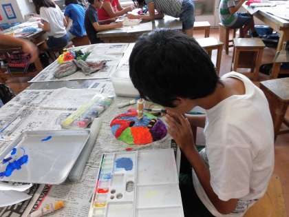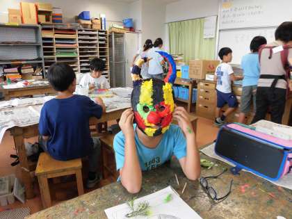 図工の学習で、それぞれ好きな「お祭り」をテーマに、お面を作っています。