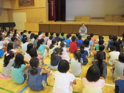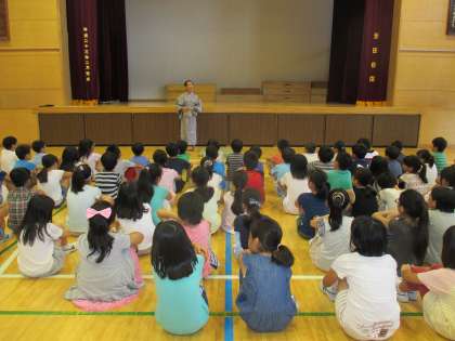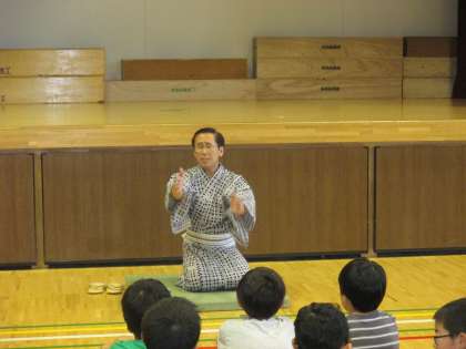 7月19日(火)4年生は国語の学習で、浅沼副校長先生に落語「じゅげむ」を見せていただきました。