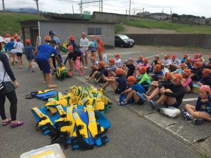 さぁ海に出発です。着替えをした後に宿前に集合して、これから海に出発です。