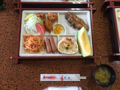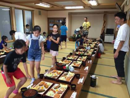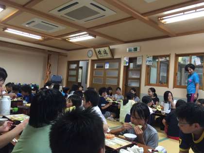 17時30分から夕食です。コシヒカリ100パーセントのおいしいご飯やメロンなどみんな腹ペコだったのであっという間に完食しました。この後は、浜辺の散策です。
