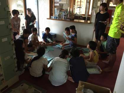 サマースクール2日目の朝です。天候は曇りです。青空が雲の隙間から見えます。予報では気温30度くらいまで上がるそうです。今日のコンディションも良さそうです。今、朝の班長会議が終わったところです。子どもたちの中には、お腹が痛いといった児童が一人いましたが、その児童も回復し、今はみんな元気です。これから朝食です。