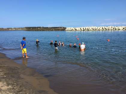 本日、一回目の入水です。午前中は15分ずつ4回海に入る予定です。