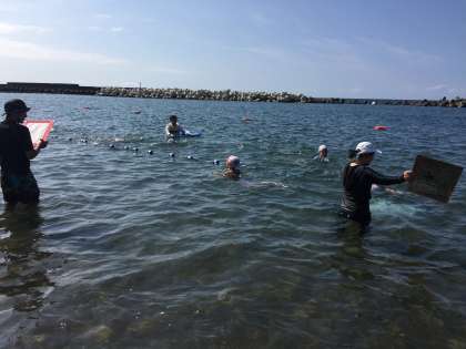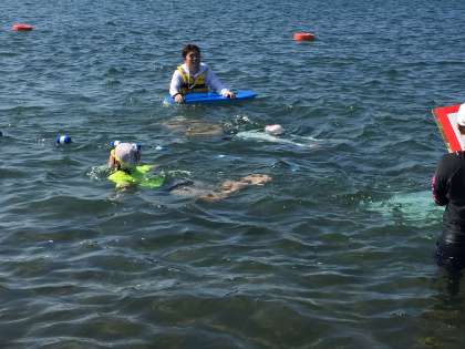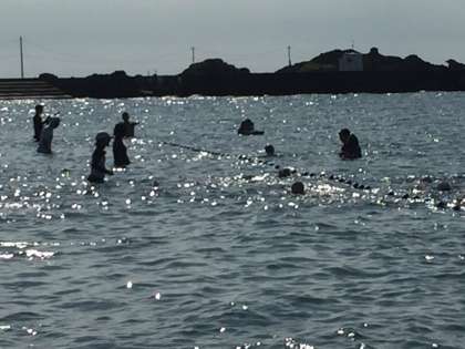 海泳ぎ検定。500m完泳者が続出です。