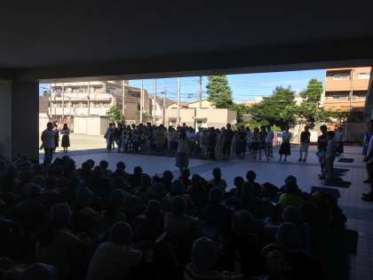 日光林間学園にただいま出発しました。午前7時56分の出発は、予定より遅い時間となりましたが、かなり渋滞が予測されますのでトイレの時間を十分にとりました。そのため、予定より出発が遅くなりました。