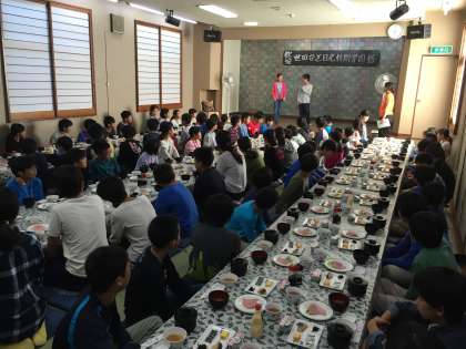 朝食です。子供たちの食欲は、様々です。昨日の夕食ほどおかわりをしている児童は見られません。しかし、しっかりと大盛りのおかわりをしている児童もいました。