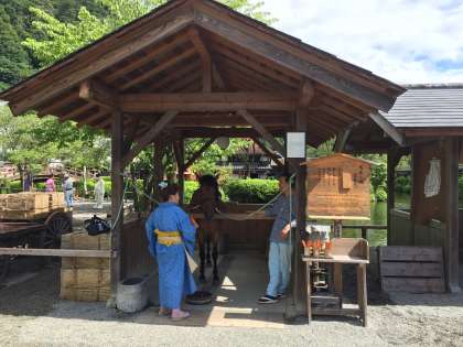 日光江戸村に入りました。町人やお侍さんに『おはようございまする』と挨拶され入場しました。