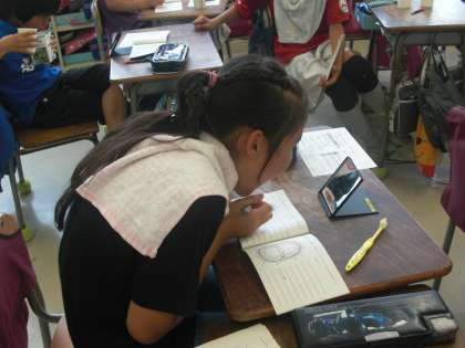 養護教諭からのお話の後、ついに、プラークテストの始まりです。
