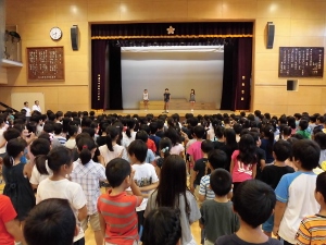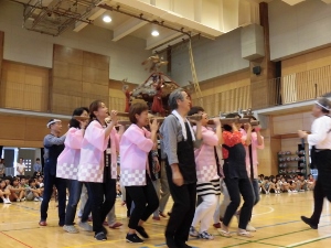 始業式の後に、地域の方が御神輿を披露してくださいました。