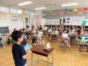 夏休みの自由課題の発表会をしました。