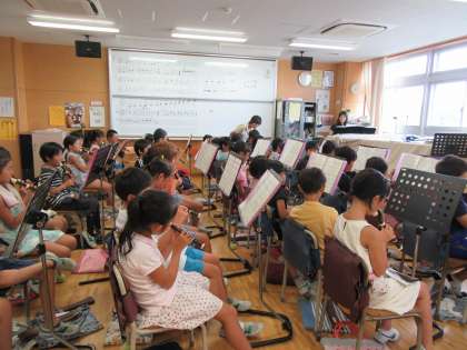 来月にある音楽朝会に向けて3年生はリコーダーの練習を頑張っています。