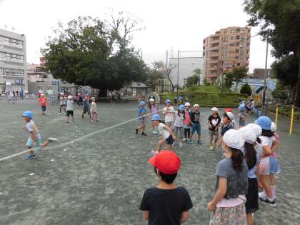 今日は、残念ながらプールに入れませんでした。そのかわりに体育館で学年合同体育をして時間を計って記録をとりました。どのクラスも気持ちを一つにかけ声をかけている姿がとても素敵でした。