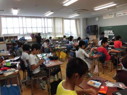 家庭科のペンケース作りをがんばっています。