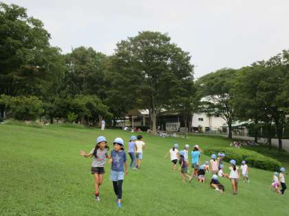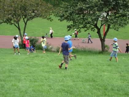おいしかったお弁当の後は、広い芝生の上で鬼ごっこをしたり、虫探しをしたり、元気いっぱいに動き回っていました。