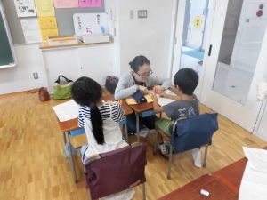 まるつけ先生教室では、子どもたちのつまづきを1対1で丁寧に教えています。