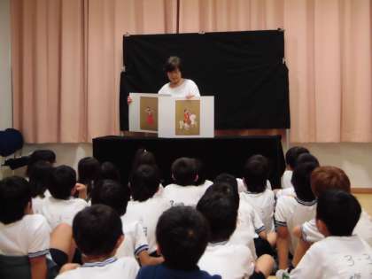 子どもたちから人気のあった「1つぶのおこめ」の紙芝居は、1つぶのお米から30日間2倍ずつもらうお話です。