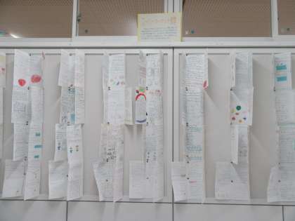 各クラスの掲示は、先日「スーパー見学」に行ったオオゼキのことをパンフレットにまとめました。